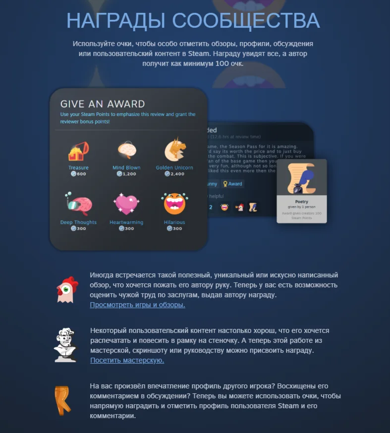 Покупая данный товар Вы получите на Ваш стим профиль награды сообщества, а также очки, которые можно будет потратить в магазине очков на стикеры, фоны, витрины, даже прокачать Ваш Steam-уровень и прочее! Очки передаются за счет начисления наград на ваш Steam-профиль.
