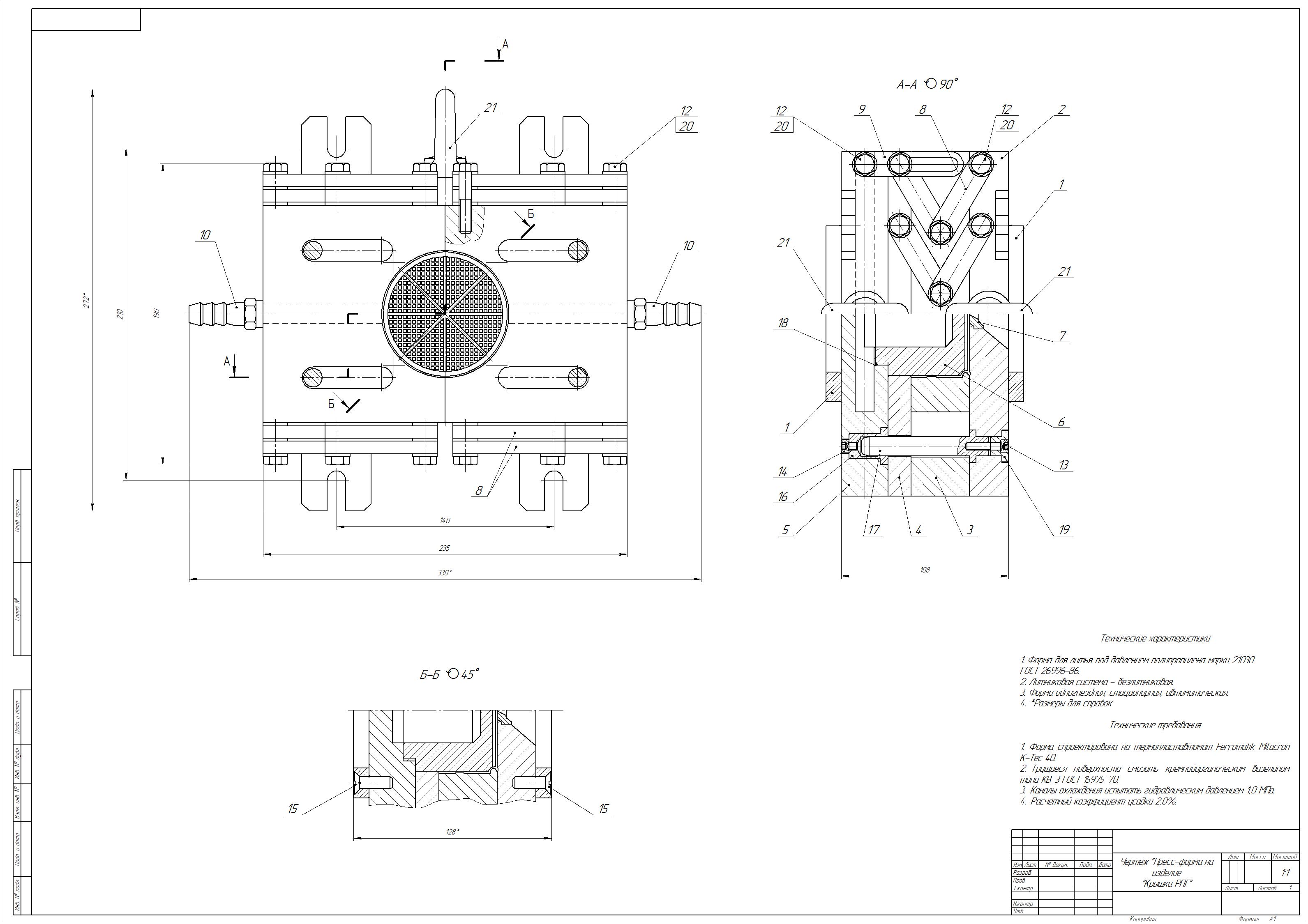 1. Форма для литья под давлением полипропилена марки 21030
