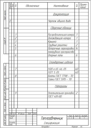 - Теплообменник. Чертеж общего вида (КОМПАС-3D)