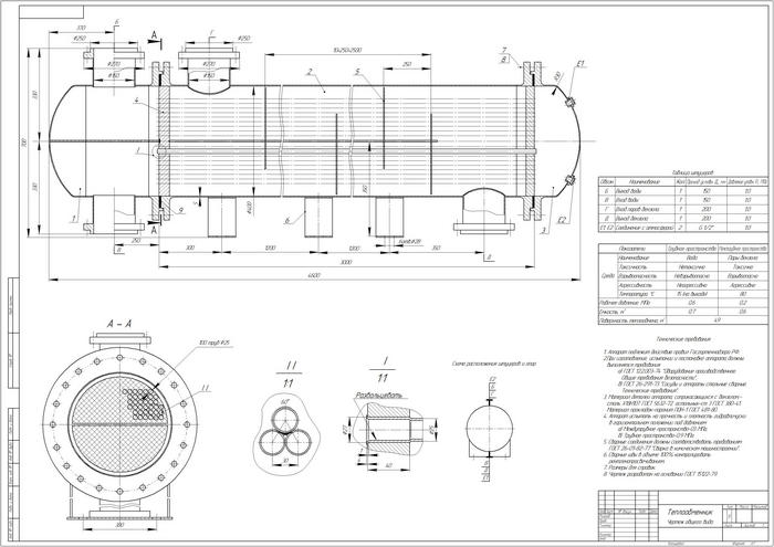 В помощь студенту » Чертеж "Теплообменник кожухотрубчатый двухходовой"