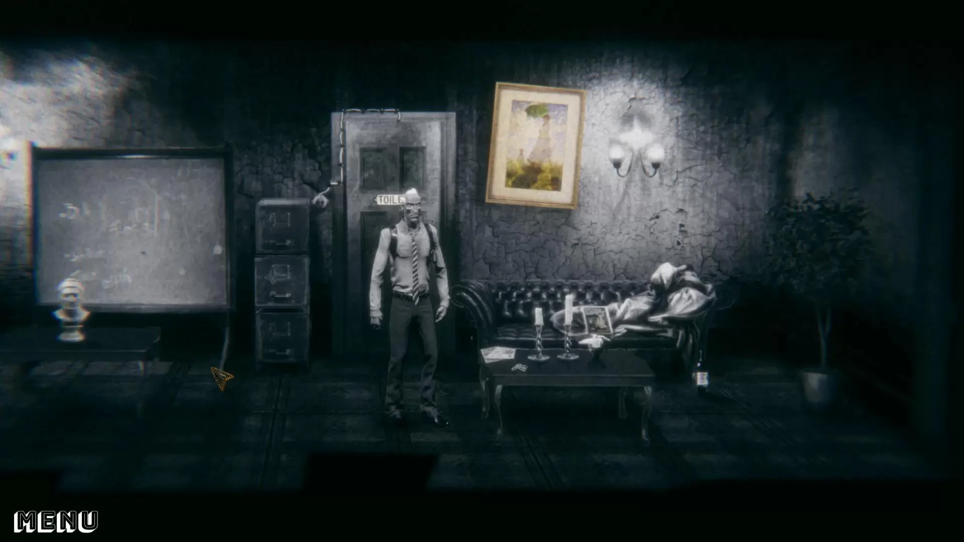 NoseBound — это современная игра в жанре point and click, которая предлагает запутанную детективную историю. Сочетая занимательные головоломки и драматические сцены действия, игра погружает игрока в зачарованный, закрученный круг обмана, нуарную атмосферу и очень своеобразного противника. КЛЮЧЕВЫЕ ОСОБЕННОСТИ Подбираемые предметы, комбинирование, базовое создание. Черно-белые фильтры, шум пленки, царапины Персонажи NP с вариантами диалогов Механизмы головоломок. Лестницы и другие физические улучшения персонажа Взлом замков, разбитие окон и другие альтернативные сложности. Перестрелки, дуэльные бои, погоня, в особых случаях, чтобы подчеркнуть драматизм. ИСТОРИЯ В NoseBound вы играете за персонажа Рэя Хэммонда, частного детектива с мрачным прошлым и нетрадиционными методами выполнения своей работы. История переносит вас вперед и назад, от конца к самому началу. У вас есть шанс узнать, что произошло, как это произошло, и прожить историю самостоятельно. Звонит телефон, вы вооружаетесь основным детективным снаряжением и выходите из офиса. Вы начинаете расследование, допрашиваете некоторых знакомых, вынюхиваете улики, и как только вы суете свой нос достаточно глубоко, начинаются большие проблемы. Проблемы, которые вы можете решить с помощью своего ума или оружия. ВСЕЛЕННАЯ NoseBound во многом вдохновлена работами Г. Ф. Лавкрафта (Зов Ктулху), Рэймонда Чандлера (Большой сон), Дэшиела Хэммета (Красная жатва). Также есть отличная работа по нескольким авторам оккультизма. Таким как Алистер Кроули, Элифас Леви, Папюс и даже Корнелий Агриппа. И когда мы говорим вдохновение, это означает, что игра не является транскрипцией пьес ни одного из этих авторов, а направлена на то, чтобы путем объединения этой смеси элементов достичь чего-то нового и плотского, я имею в виду, свежего.