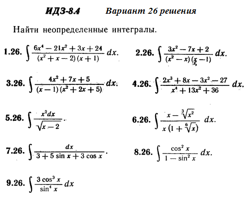 Решения 9-и неопределенных интегралов из Рябушко части 2 ИДЗ 8.4 вариант 26