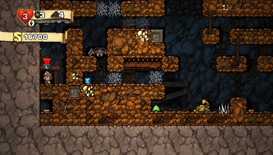 Spelunky (also known as Spelunky HD) is a remake of Spelunky (now known as Spelunky Classic), an open source indie platformer video game created by Derek Yu and originally released as freeware for Microsoft Windows. The player controls a spelunker who explores a series of caves while collecting treasure, saving damsels, fighting enemies and dodging traps. The caves are procedurally generated, making each run through the game unique. Spelunky is one of the first examples of a roguelike-like, borrowing concepts from the roguelike genre, and was the influence for many later roguelike-like games.
