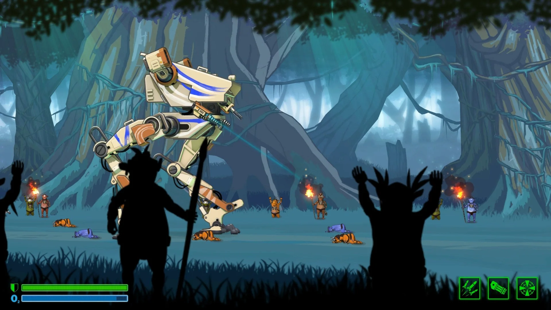 Вы — пилот боевой машины-шагохода BE-A Walker. Ваша задача разгромить враждебные племена туземцев, чтобы обеспечить безопасность колонизации планеты Эльдорадо. Но уничтожение целой внеземной расы не единственный путь к прекращению войны. Выберите свою сторону и определитесь что Вам больше подходит: быть человеком и драться за выживание человечества или проявить человечность и спасти внеземную расу от человека.Управление шагоходом — дело непростое. Поднять одну ногу, передвинуть ее, сделать шаг. Повторить для другой ноги. Именно так ходит шагоход. Управляйте каждой ногой по-отдельности, чтобы раздавить врага или избежать взрыва гранат и ракет.Ключевые особенности: Бесшовный генерируемый мир