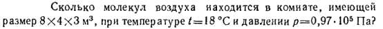 Сколько молекул воздуха находится в комнате, имеющей размер 8 x 4 x 3 м3, при температуре t = 18°С и давлении p = 0,97·105 Па?