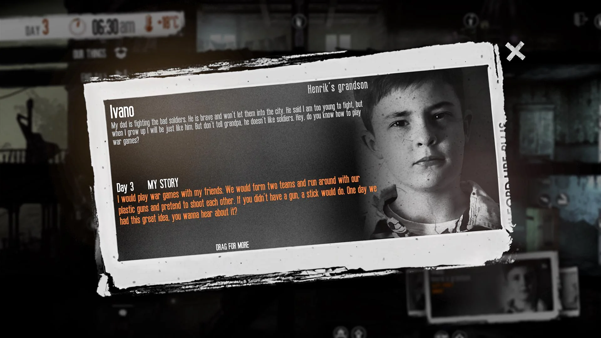 "This War of Mine: The Little Ones" рассказывает об ужасах войны и трудностях выживания с совершенно новой точки зрения - увиденных глазами ребенка. Это дополнение ставит вас во главе группы взрослых и детей, борющихся за выживание в осажденном городе.
