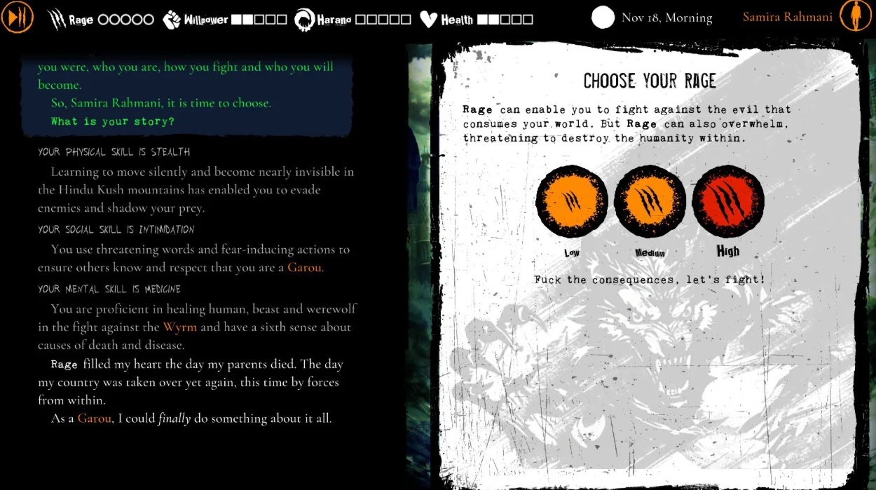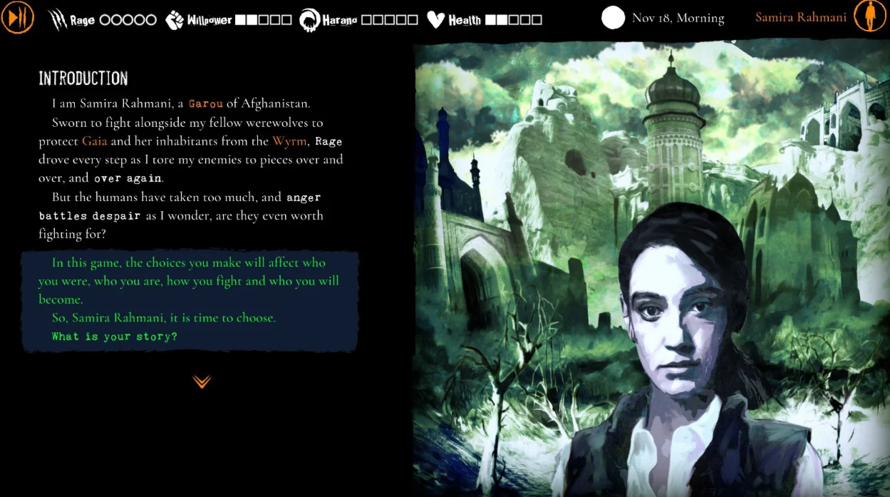 Выберите свой путь: расследуйте сверхъестественное убийство или погрузитесь в тайны могущественной стаи оборотней. Ваш выбор влияет на путешествие Самиры, уравновешивая ее здоровье, силу воли, ярость и навыки. Поведете ли вы ее к свету или тьме?