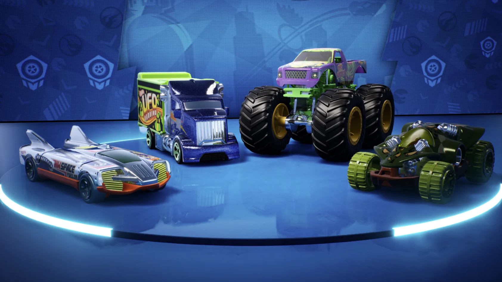 Попробуйте очень-даже-опознанные наземные объекты: Hiway Hauler™ 2, мощный компактный грузовик; Test Subject™, монстр-трак, готовый к любым испытаниям; Speed Slayer™, воплощение огромной скорости; Swamp Buggy, предлагающий нетрадиционный подход к гонкам по любой местности.