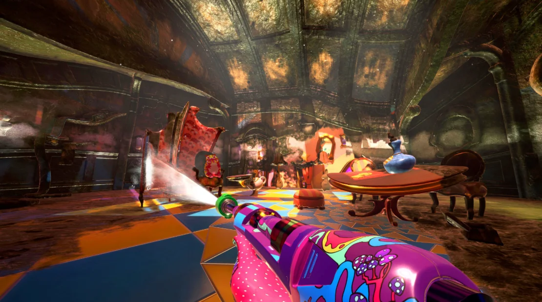 Здесь вы не всегда сможете понять, что именно вы моете. Ковер или часы? Морковку или чашку? Конечно, вам придется отмывать и такие привычные вещи, как стены, столы и полы, но здесь даже у дверей бывают двери. И если в процессе работы вы неожиданно задумаетесь о том, что надевает гусеница, ложась в постель, вам достаточно поднять глаза, чтобы увидеть ответ.