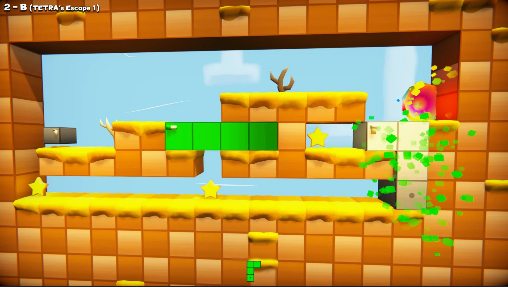 Перемещайте тетрамино и используйте их особую способность трансформироваться в различные формы тетрамино, чтобы создавать платформы и сохранять их на протяжении 80 уровней игры.