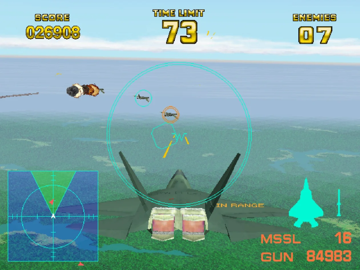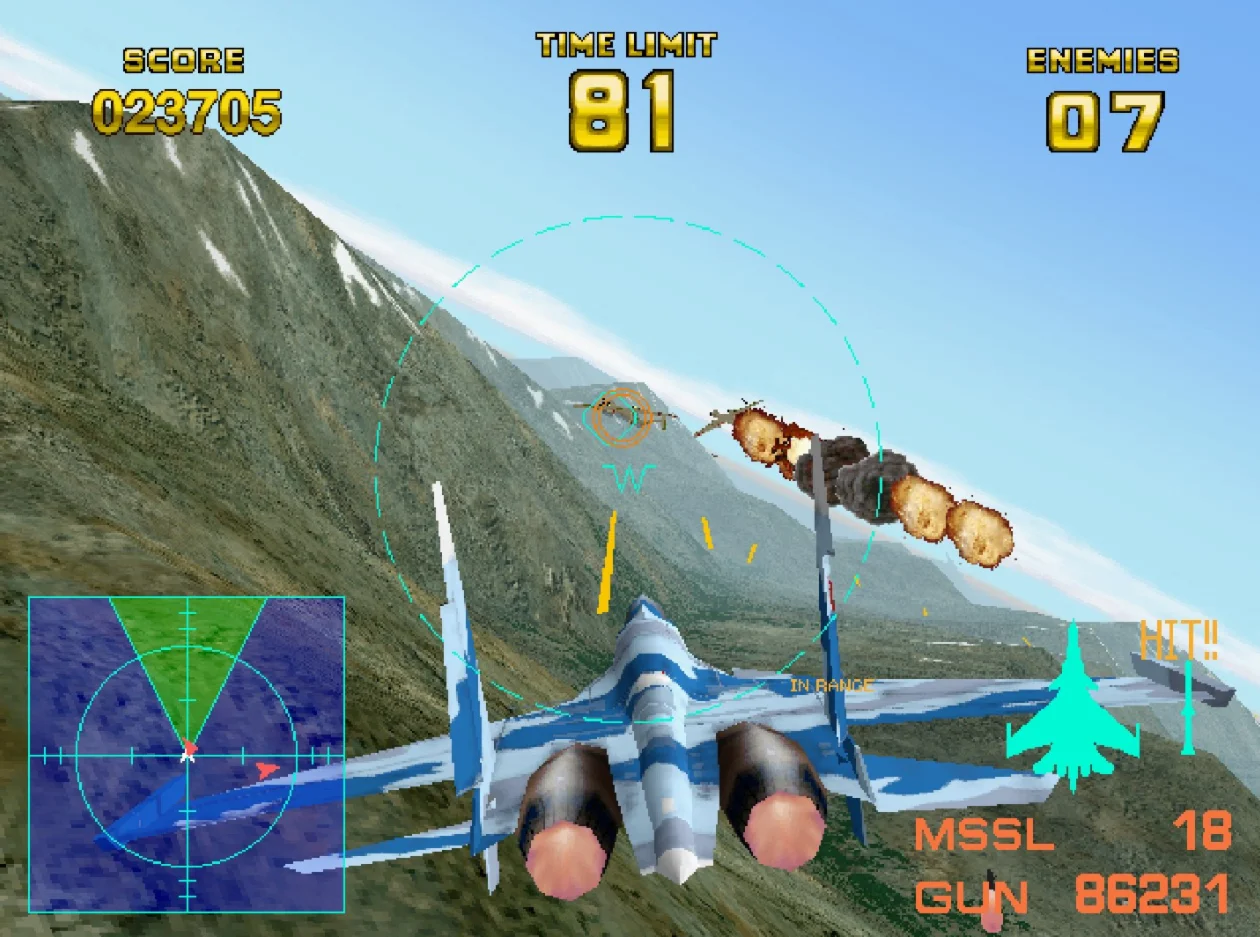 "AIR COMBAT 22" - это шутер с полетами, выпущенный NAMCO (Bandai Namco Entertainment) в 1995 году.