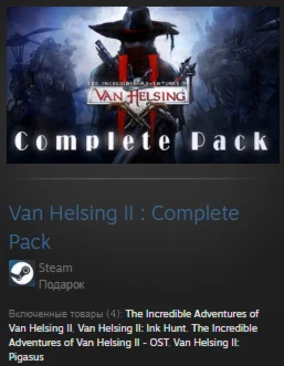 Включенные товары (4): The Incredible Adventures of Van Helsing II, Van Helsing II: Ink Hunt, The Incredible Adventures of Van Helsing II - OST, Van Helsing II: Pigasus
