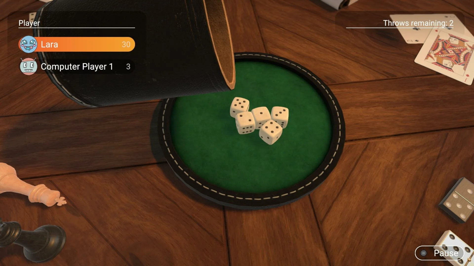 Выбросить комбинацию «Покер» довольно сложно: нужно три раза выбросить пять кубиков с одинаковым числом. В этом классическом покере на костях игроков порадуют простые правила в сочетании с увлекательным игровым процессом. До самого конца вы небудете знать, кто набрал наибольшее количество очков.Важные особенностиРазные режимы игры.Красивые игровые поля.