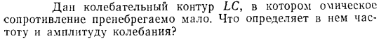 Дан колебательный контур LC, в котором омическое сопротивление пренебрегаемо мало. Что определяет в нем частоту и амплитуду колебания?