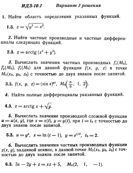 Решения 6-и заданий на частные производные из Рябушко части 2 ИДЗ 10.1 вариант 3