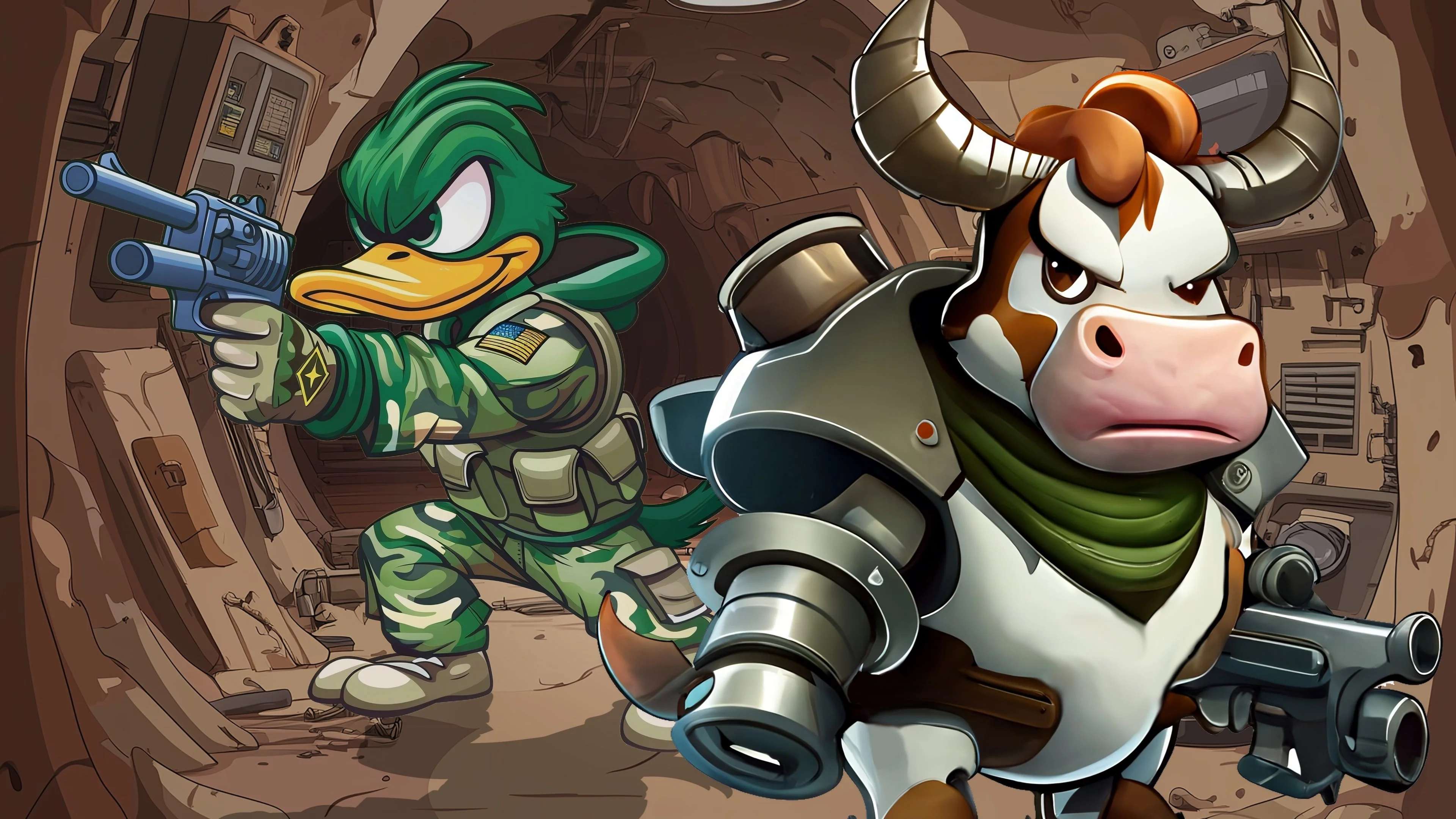 Theyre MAD and DUMB Two explosive actionpacked animal games together in a single bundle The militant cows fight the aliens above while the ducks battle demonic snails below