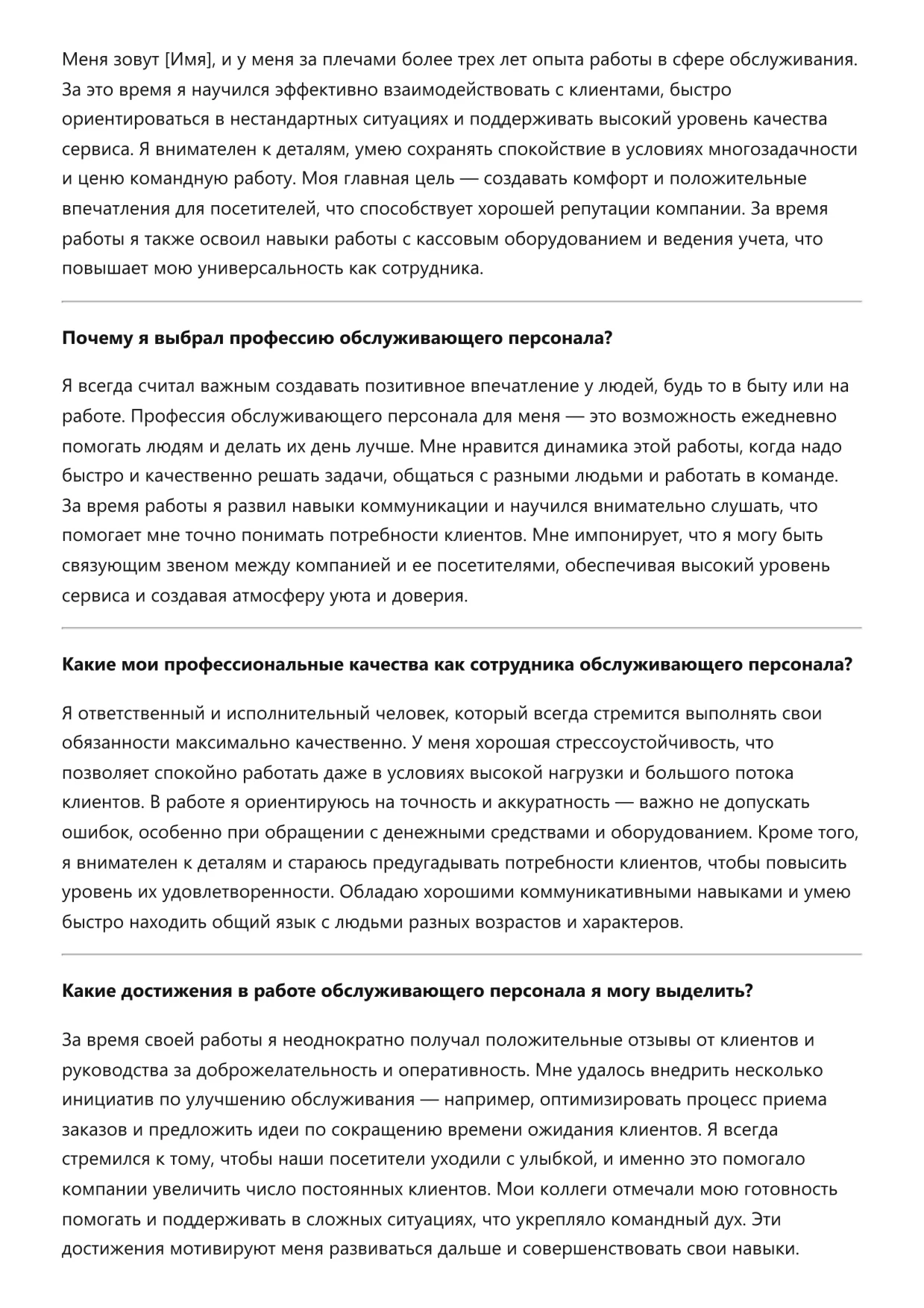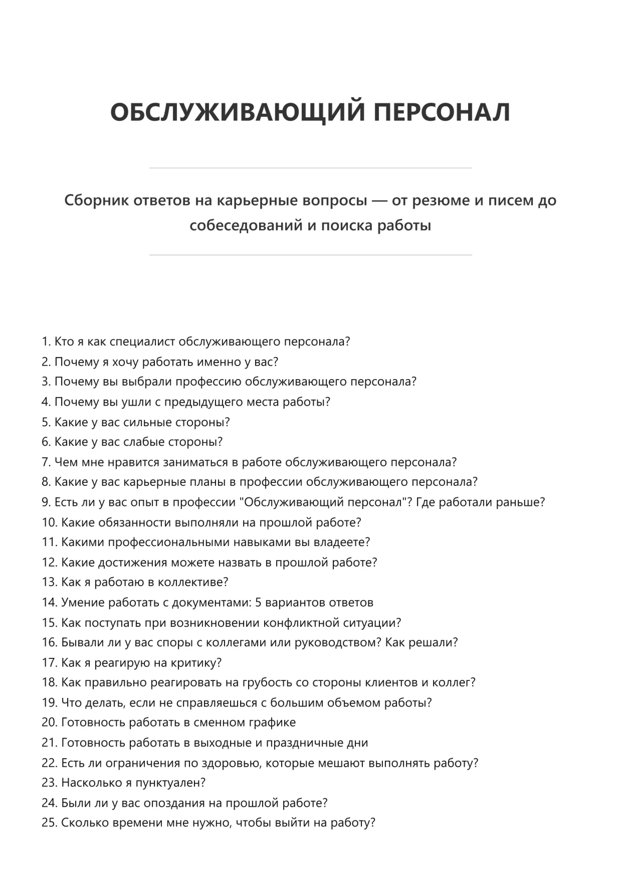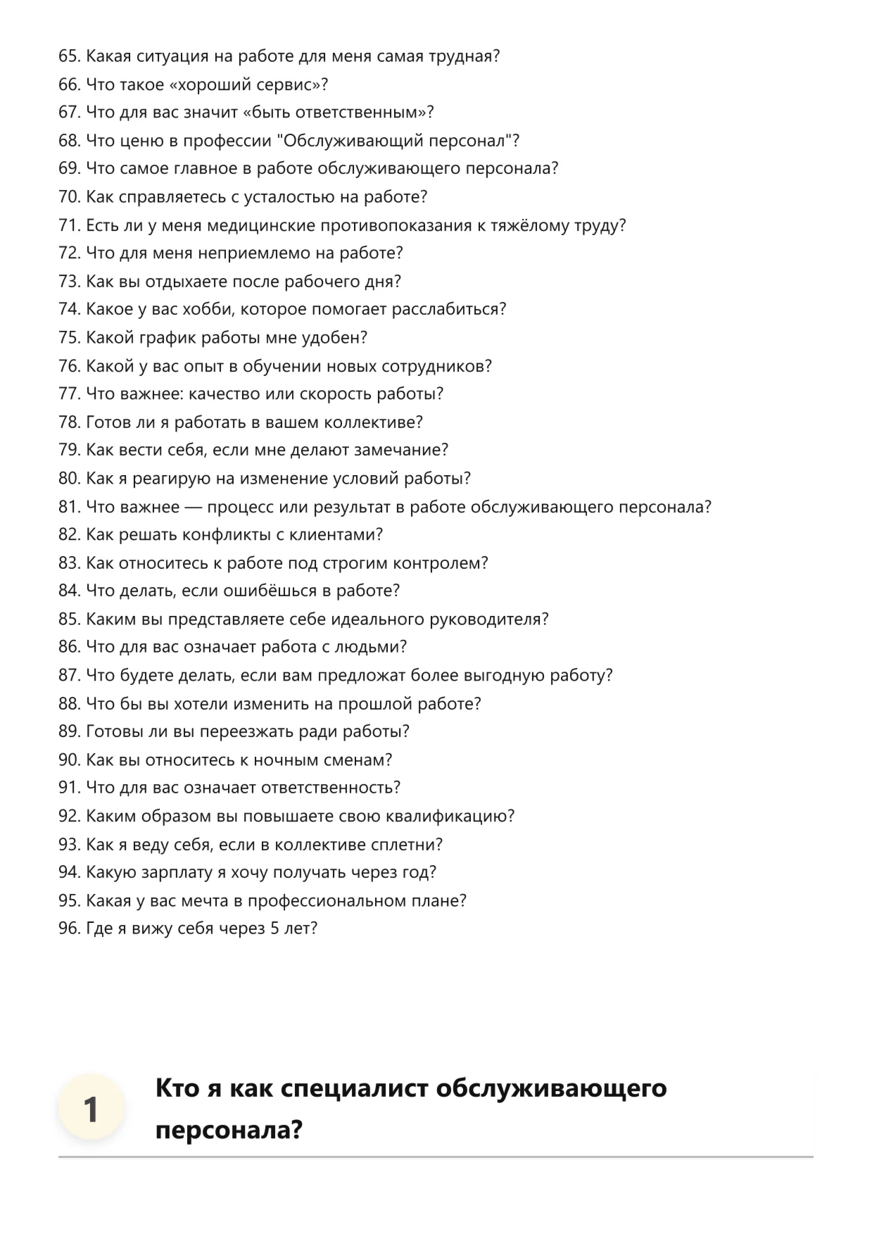 Обслуживающий персонал. Подготовка к собеседованию. Как пройти собеседование на позицию специалиста. Вопросы и ответы на собеседовании.