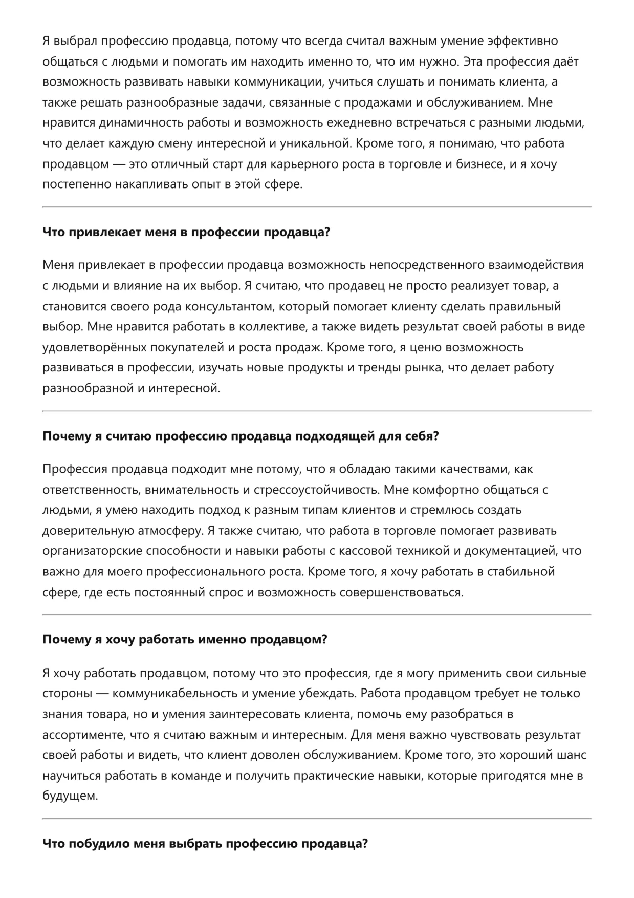 Продавец. Подготовка к собеседованию. Как пройти собеседование на позицию специалиста. Вопросы и ответы на собеседовании.