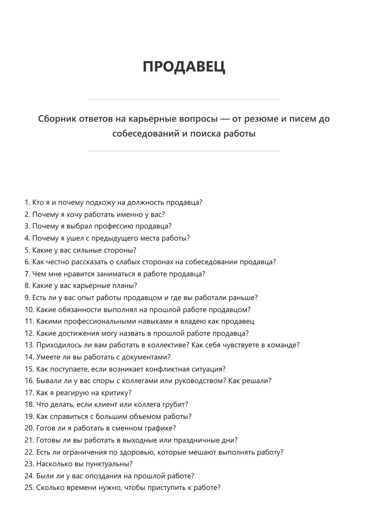 Эта электронная книга представляет собой сборник вопросов и ответов, которые часто возникают у соискателей на разных этапах поиска работы. В ней собран практический опыт и советы, которые помогут быстрее разобраться в нюансах трудоустройства и уверенно действовать в любых ситуациях.