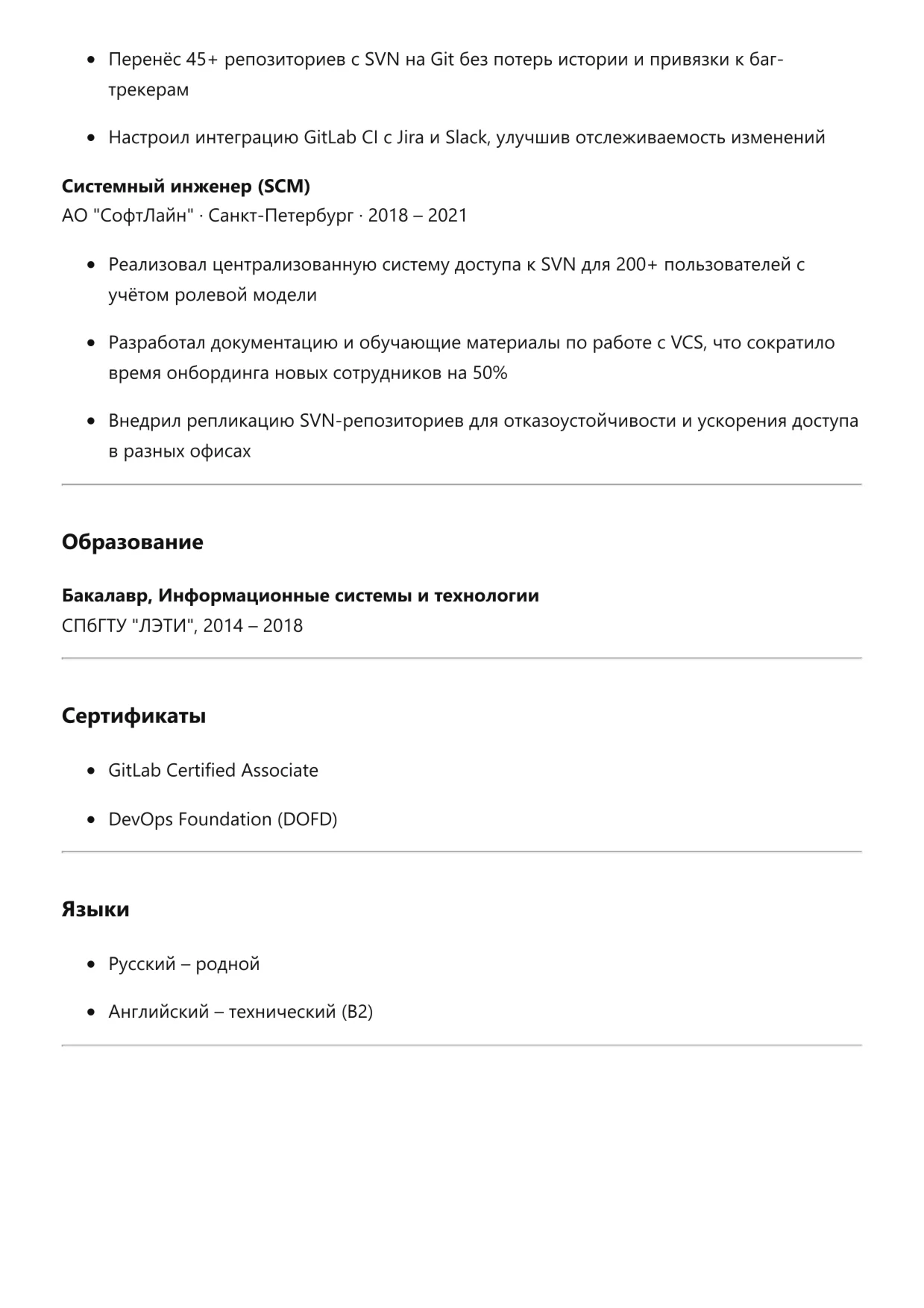 Разработка и проектирование ПО » Специалист по системам контроля версий (Git, SVN)