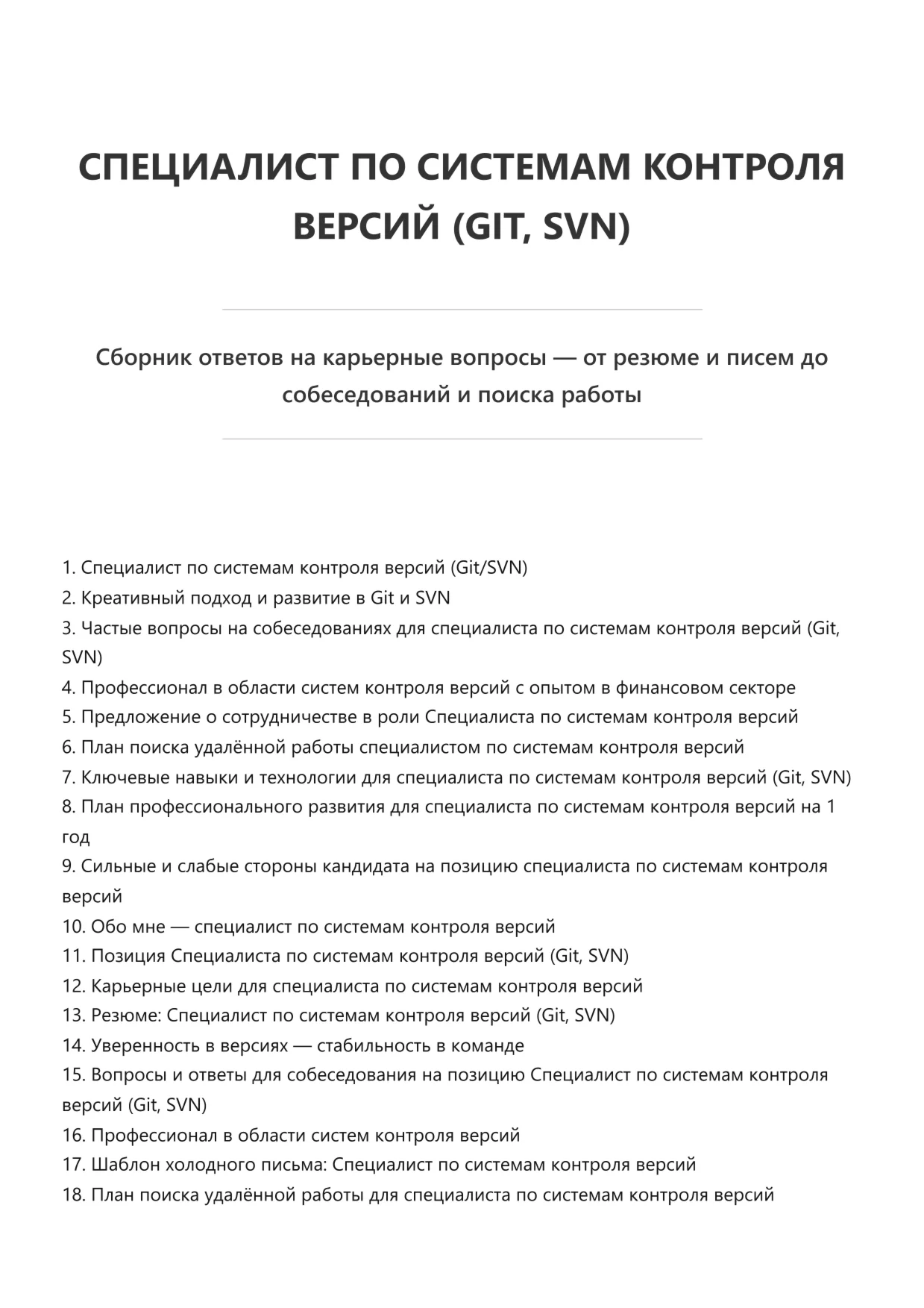 Специалист по системам контроля версий (Git, SVN). Подготовка к собеседованию. Как пройти собеседование на позицию специалиста. Вопросы и ответы на собеседовании.