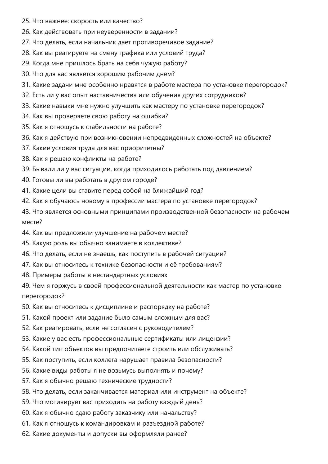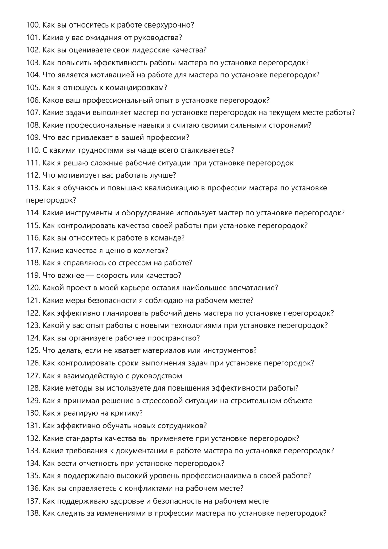 Мастер по установке перегородок. Подготовка к собеседованию. Как пройти собеседование на позицию специалиста. Вопросы и ответы на собеседовании.