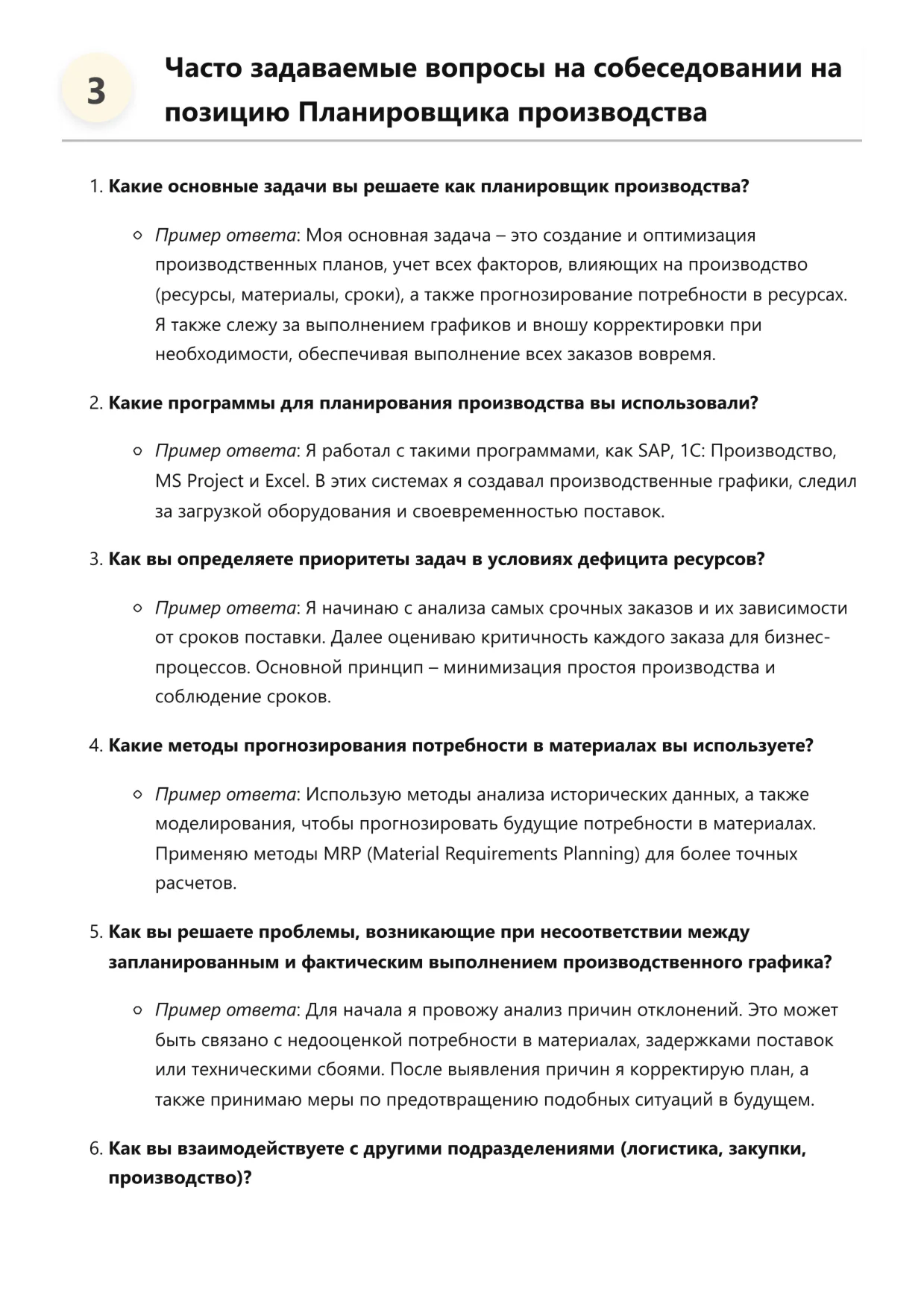 Планировщик производства. Подготовка к собеседованию. Как пройти собеседование на позицию специалиста. Вопросы и ответы на собеседовании.