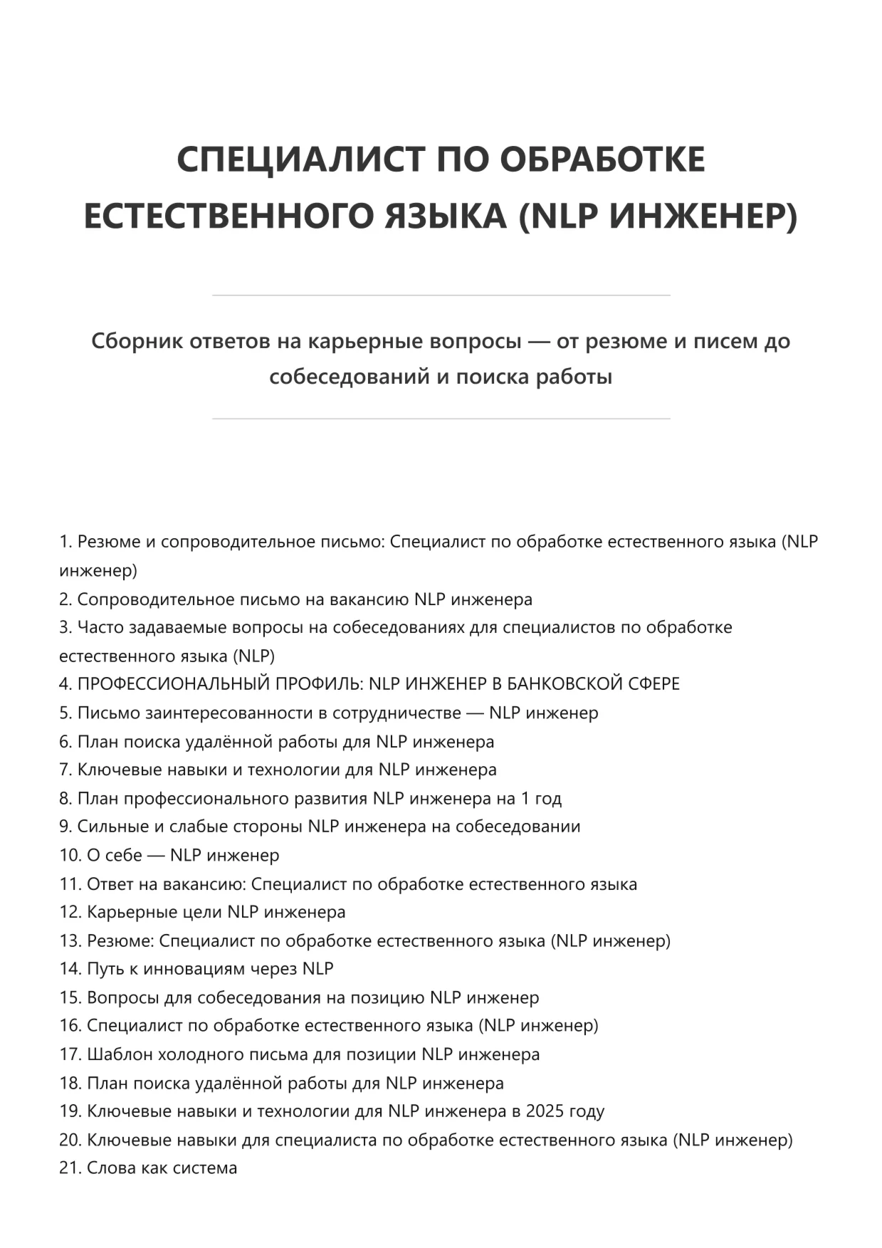 Специалист по обработке естественного языка (NLP инженер). Подготовка к собеседованию. Как пройти собеседование на позицию специалиста. Вопросы и ответы на собеседовании.