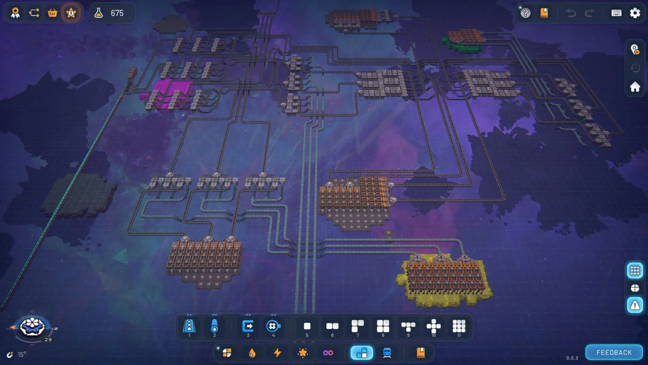 Shapez 2 — это строительство фабрик в чистом виде: все здания бесплатны, ресурсы никогда не заканчиваются, нет ни врагов, ни ограничений по времени. Приготовьтесь только строить: удалять объекты легко, а переделывать и перестраивать можно сколько угодно без штрафов и в своем темпе.