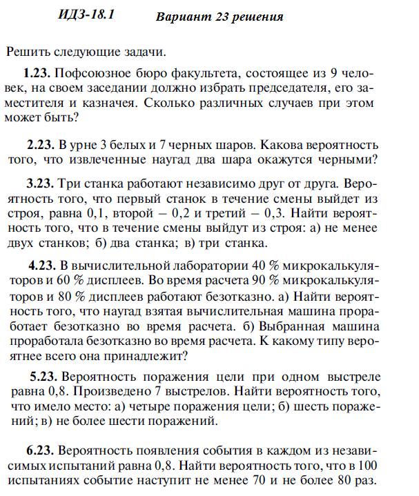Решения 6-и задач по теории вероятностей из Рябушко части 4 ИДЗ 18.1 вариант 23