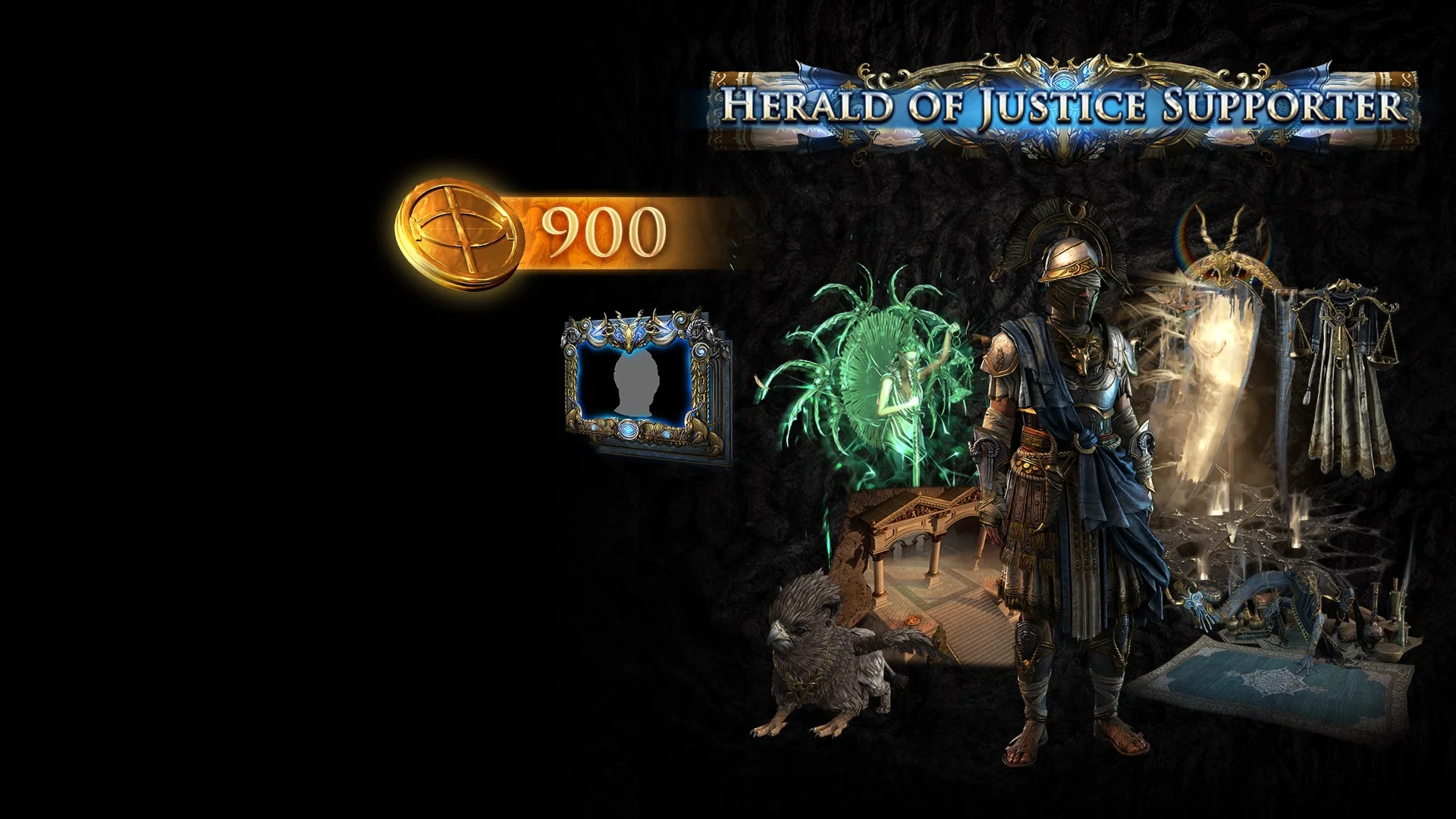 В набор поддержки Глашатая правосудия входят убежище питомец набор доспехов заплечное украшение эффект добивания врагов портал украшение для убежища три портретные рамки три форумных титула три значка и 900 монет