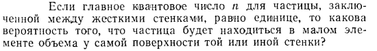Если главное квантовое число n для частицы, заключенной между жесткими стенками, равно единице, то какова вероятность того, что частица будет находиться в малом элементе объема у самой поверхности той или иной стенки?