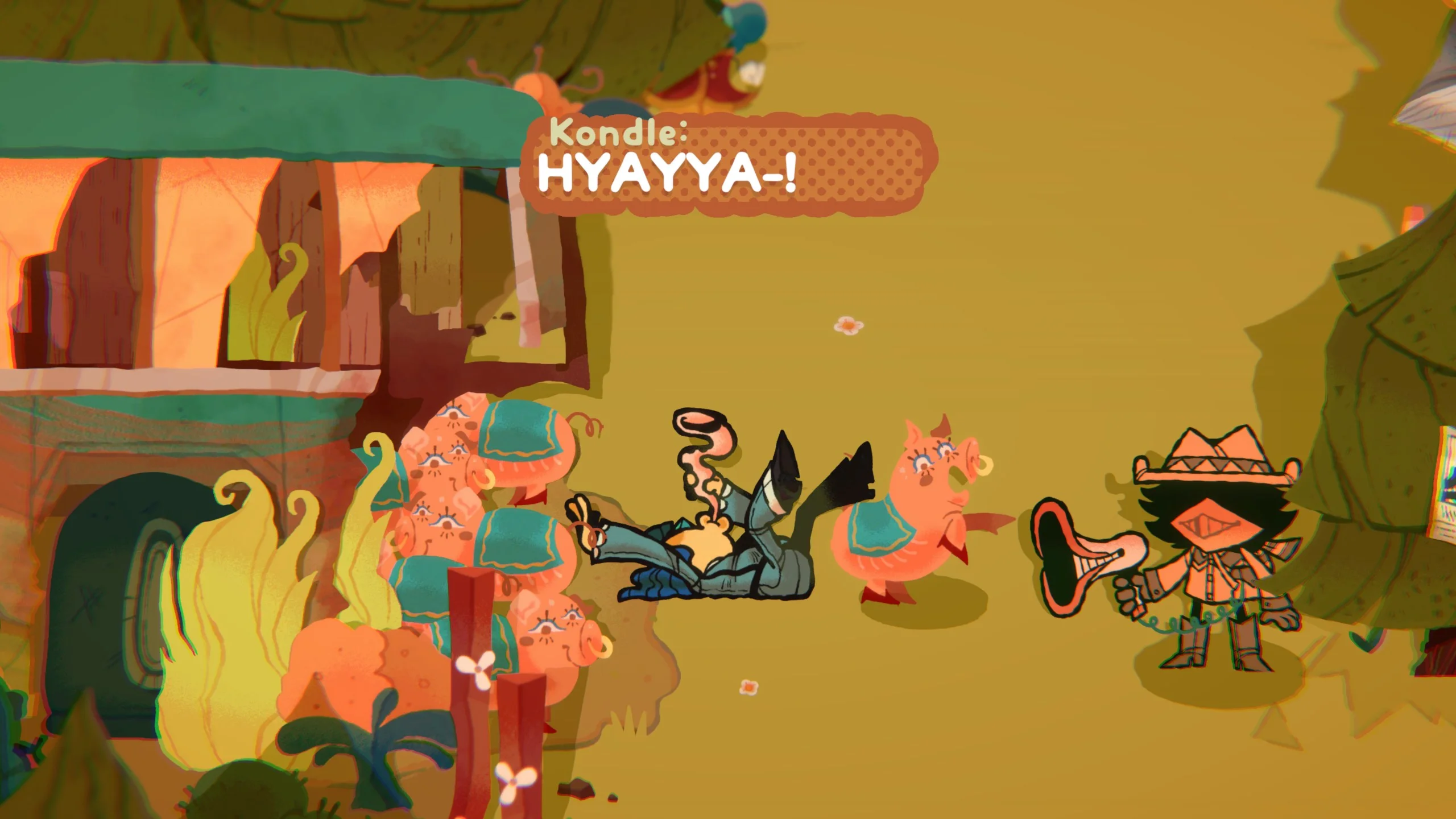 • SUCK UP AND LAUNCH DIALOGUE! As the gods’ new mail-carrier, you can suck up speech bubbles and fire them at anyone to communicate! Solve puzzles! Flirt! HURT GODS’ FEELINGS! Aww…