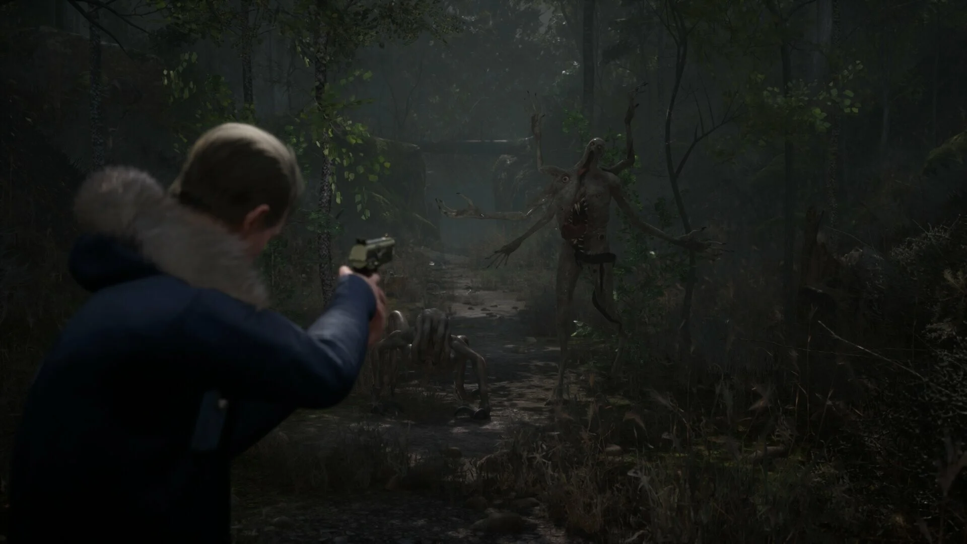 Испытайте истинный ужас благодаря объединённой мощи движка Unreal 5 Engine и технологии Metahuman. Продвинутая система захвата лицевой анимации обеспечивает широкий спектр человеческих эмоций невиданной ранее фотореалистичности! Динамические погодные условия и освещение оживляют Аспен-Фоллз во всех его мрачных подробностях — от пошарпанных обоев бабушкиного дома до укрытого туманом дремучего леса!