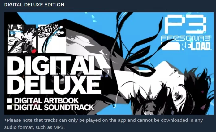 – Цифровой саундтрек (60 новых композиций, включая музыку из оригинальной Persona 3 в новой аранжировке и новые треки, созданные композиторами Atlus специально для Persona 3 Reload