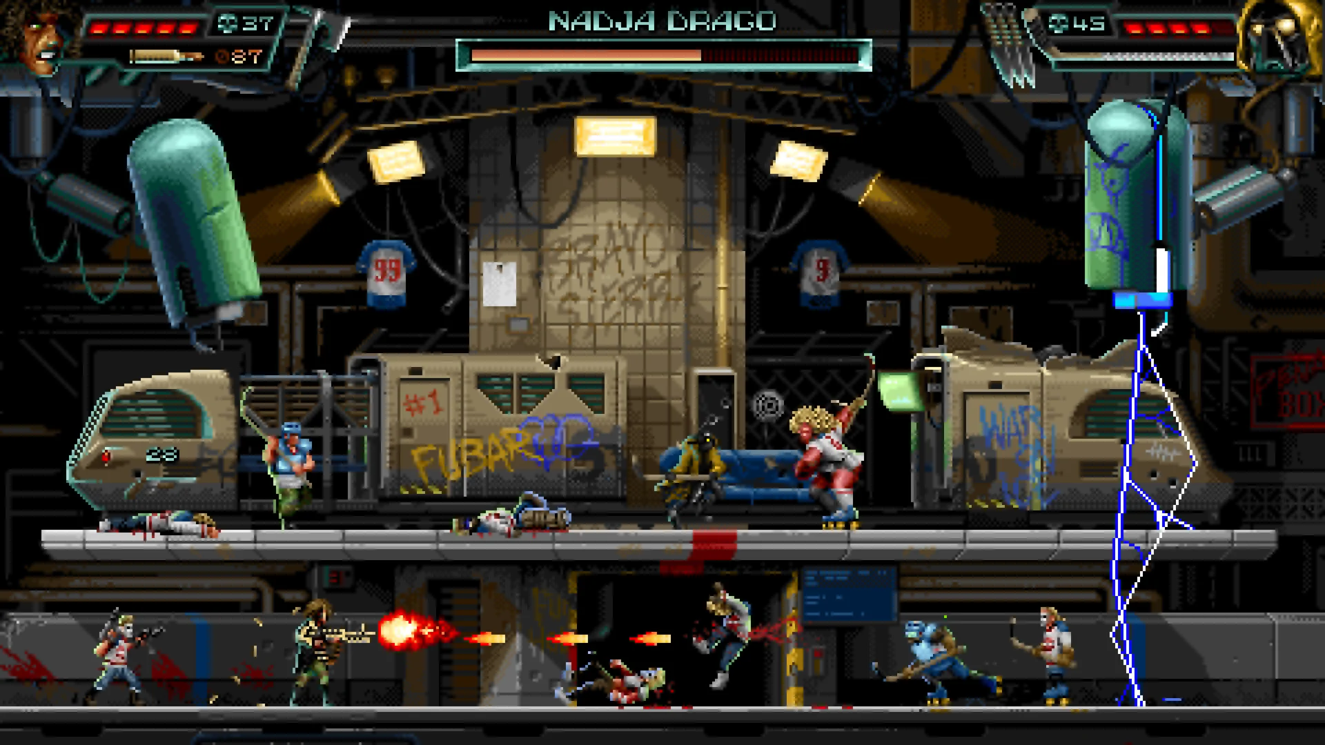 Отрисованные вручную 16-битная пиксельная графика и анимация, энергичный геймплей, 60 кадров в секунду и убойный синтезаторный саундтрек.