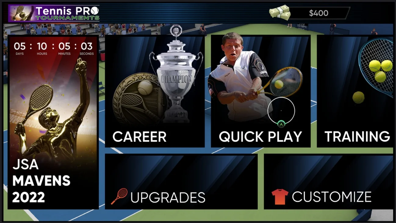 Настройте своего игрока, пройдите обучение и играйте. Пришло время войти в историю тенниса.