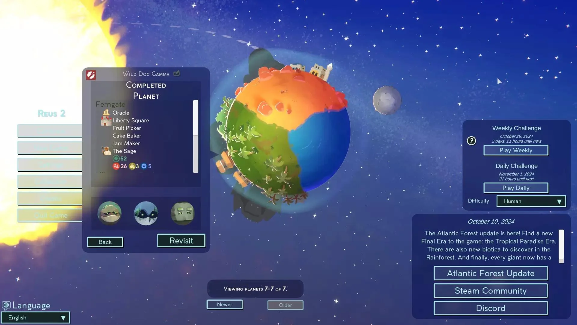 Вновь станьте богом в Reus 2, возглавив могучих гигантов, чья власть над стихиями позволяет вам формировать миры, создавать экосистему ресурсов и обеспечивать процветание человеческих цивилизаций. От вашего выбора будут зависеть судьбы этих хрупких человеческих существ, чья самостоятельность может позволить им достичь грандиозных высот. Создавайте миры вместе с гигантами В вашем распоряжении 6 могущественных гигантов, каждый из которых обладает своими уникальными способностями в обращении с растениями, животными и минералами, что позволит вам создать новые биомы для людей, чтобы они могли обустроить там поселения. По мере продвижения вперед черпайте вдохновение, чтобы раскрыть новые способности гигантов, дающие вам разнообразие возможностей. Отношения и катастрофы С обновлением !Новый катаклизм! в игре появилось больше дополнительных испытаний. Лидеры теперь могут формировать отношения с гигантами и друг другом на основе характеров, заключать союзы через торговлю или вступать в войну. Человечество может взбунтоваться против гигантов и отправить Охотников, которые могут их уничтожить! Используйте новые разрушительные силы стихий, чтобы научить их уважать богов. Создавайте процветающие экосистемы Терраформируйте разнообразные биомы, стратегически выстраивая различные комбинации флоры, фауны и минералов, характерных для этих экосистем. Экспериментируйте и выясняйте какие комбинации лучше всего сочетаются с потребностями и целями обитателей, помогая им переходить к новым захватывающим эпохам своего существования. Ведите человечество в будущее Определите путь развития человечества, делая свои выборы по мере того, как оно будет эволюционировать от ранних человеческих сообществ до современных цивилизаций. Будь то путешествие к звездам в качестве исследователей космоса, основание культа или желание заниматься возделыванием природных богатств - у каждого будут свои цели. Независимо от результата, помните, что вы всегда можете дать начало новому человечеству. Наполните галактику жизнью Каждое прохождение игры оставляет в звездных просторах незабываемое наследие, порождая новую планету, с которой вам предстоит экспериментировать. Наполните галактику бесконечными вариациями форм жизни и вдохновитесь на новый путь, создавая свое следующее творение. ©2024 Reus 2. Developed by Abbey Games and published by Firesquid. All rights reserved.