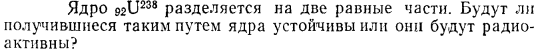 Ядро 92U238 разделяется на две равные части. Будут ли получившиеся таким путем ядра устойчивы или они будут радиоактивны?