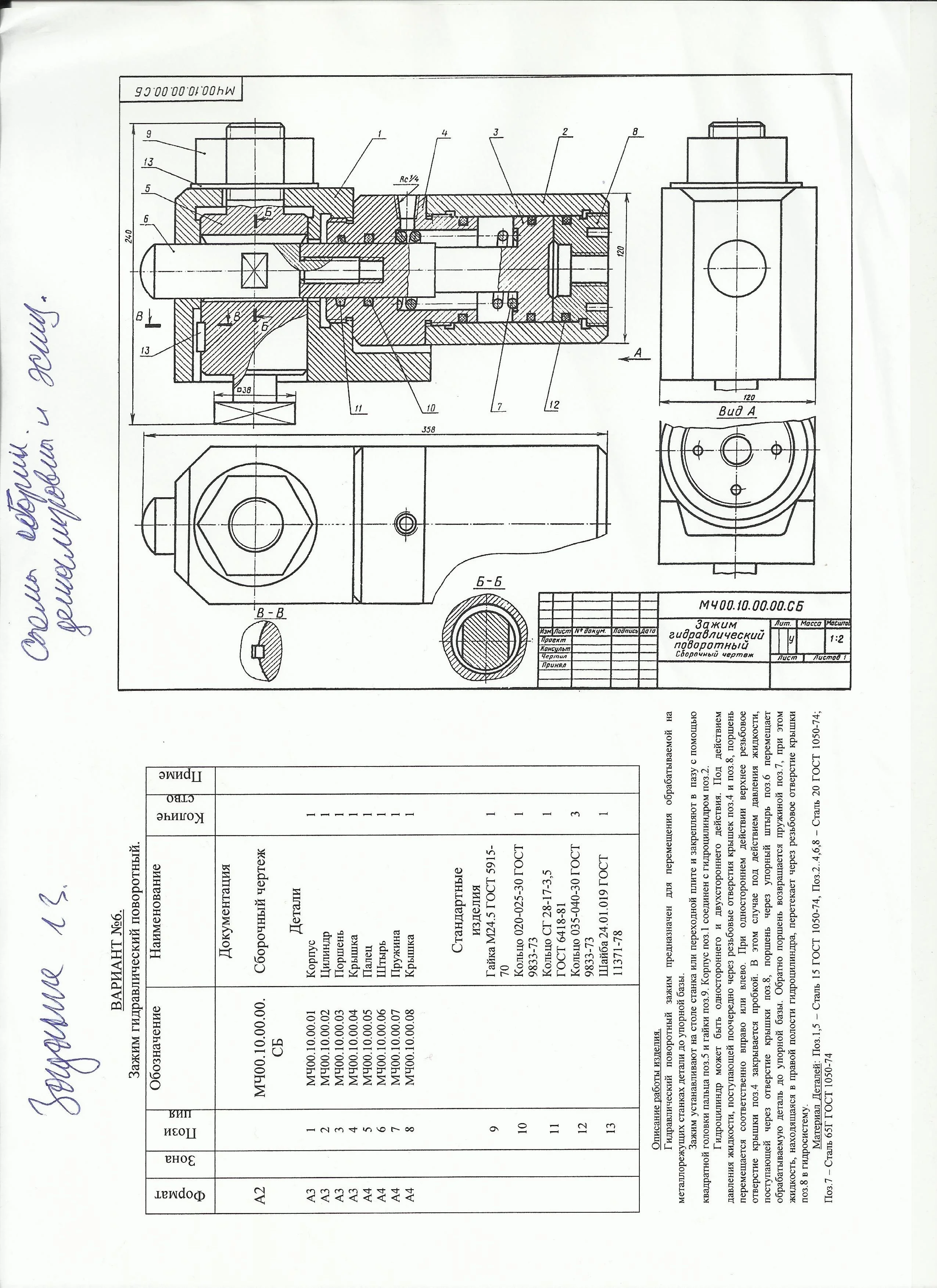 Трехмерные модели деталей и сборки МЧ00.10.00.00 зажим гидравлический поворотный из сборника по деталированию Боголюбова. Модели выполнены в Компас 3D.