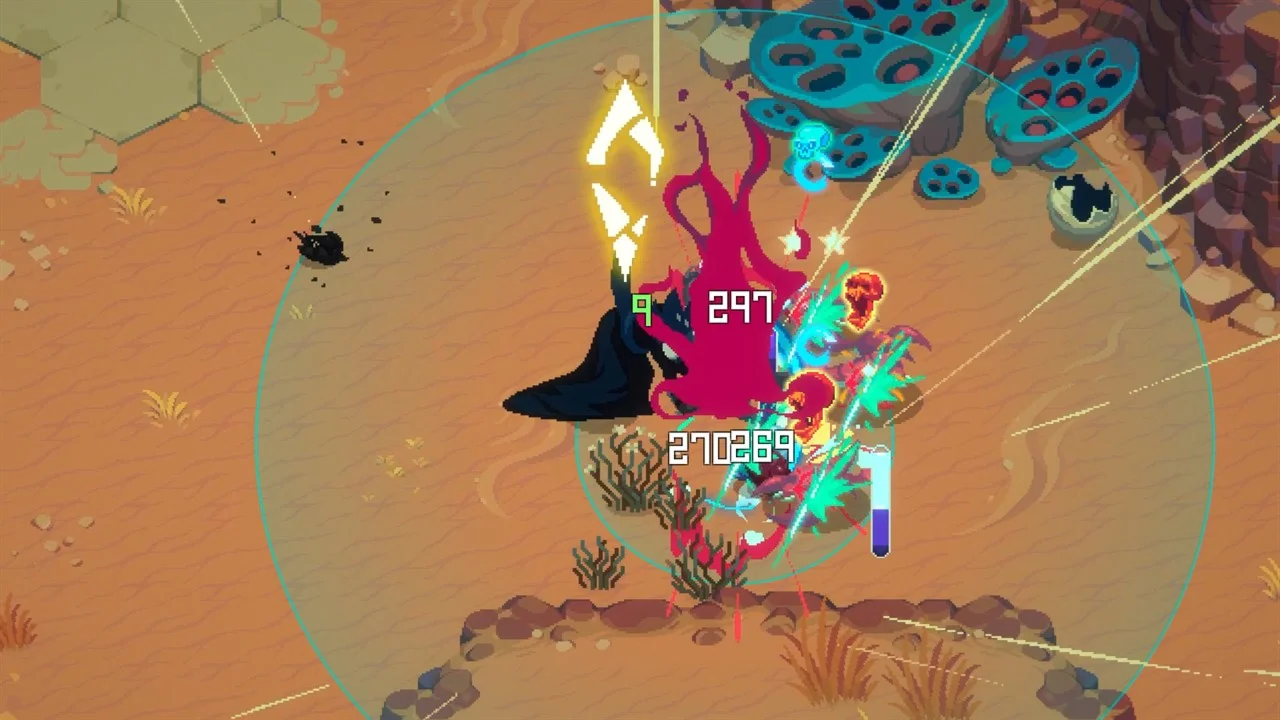 Яркий и приятный глазу пиксель-арт: каждое дерево, куст и камень нарисованы от руки, а враги тщательно и разнообразно анимированы. Все это создает уникальный визуальный компонент игры;