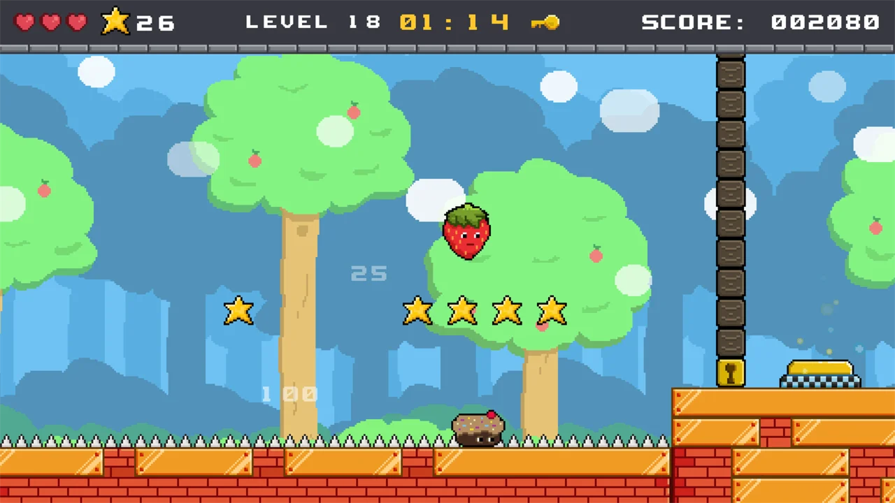 - Help Super Strawberry pass through obstacles and eliminate sweet enemies to become the bravest Fruit in the Healthy Forest. Find the key and unlock the blocks at the end of each level.